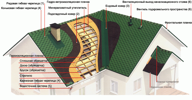 Устройство утепленной вентилируемой мягкой кровли |