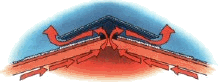 Поступление холодного воздуха идет снизу (через так называемые продухи), выход сверху.
